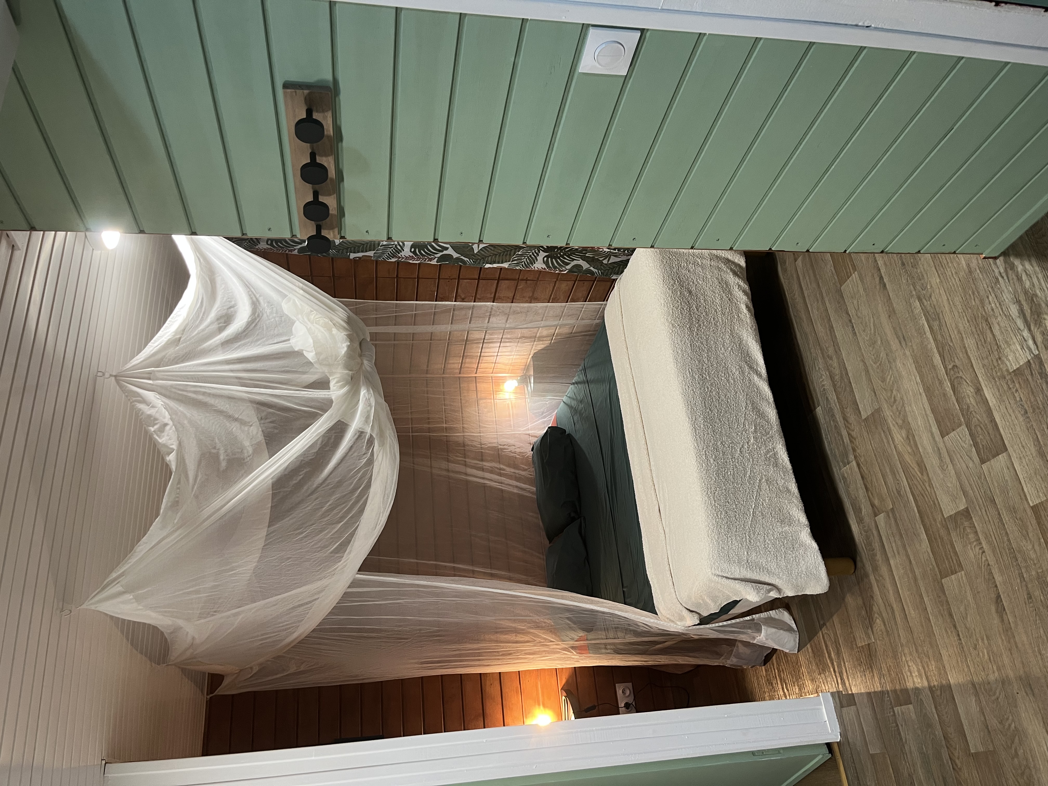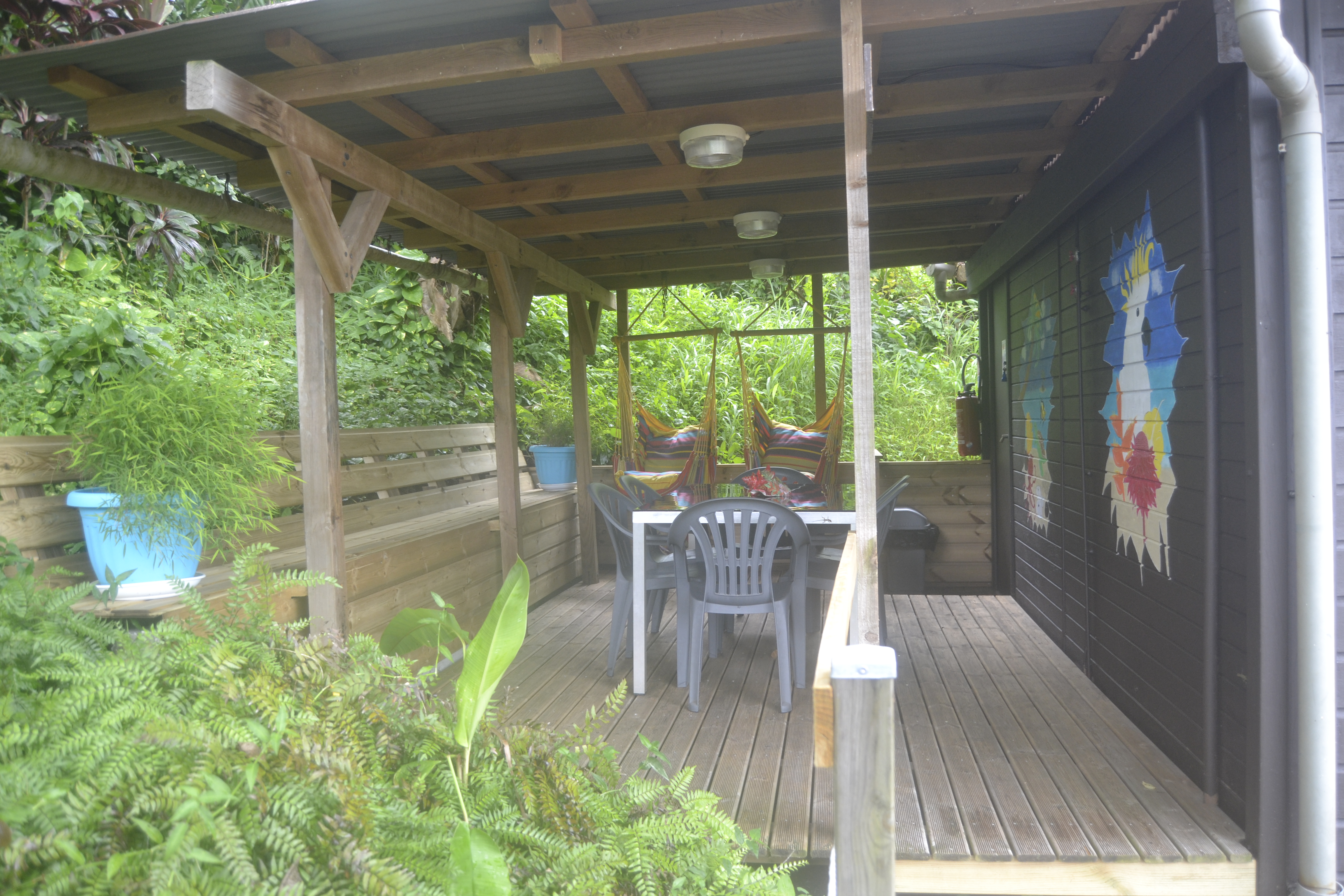 Petit studio sur pilotis niché au milieu d'un jardin tropical. Equipé d'une kitchenette, d'un coin chambre, d'une salle de douche et d'une terrasse.