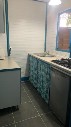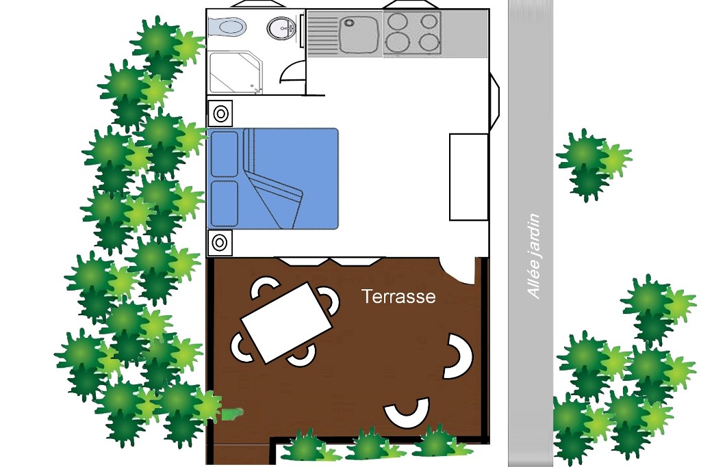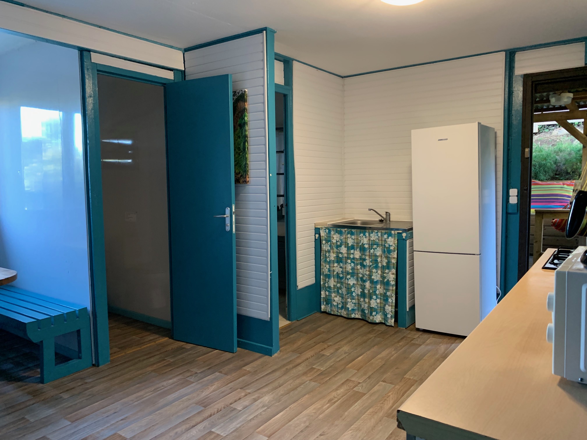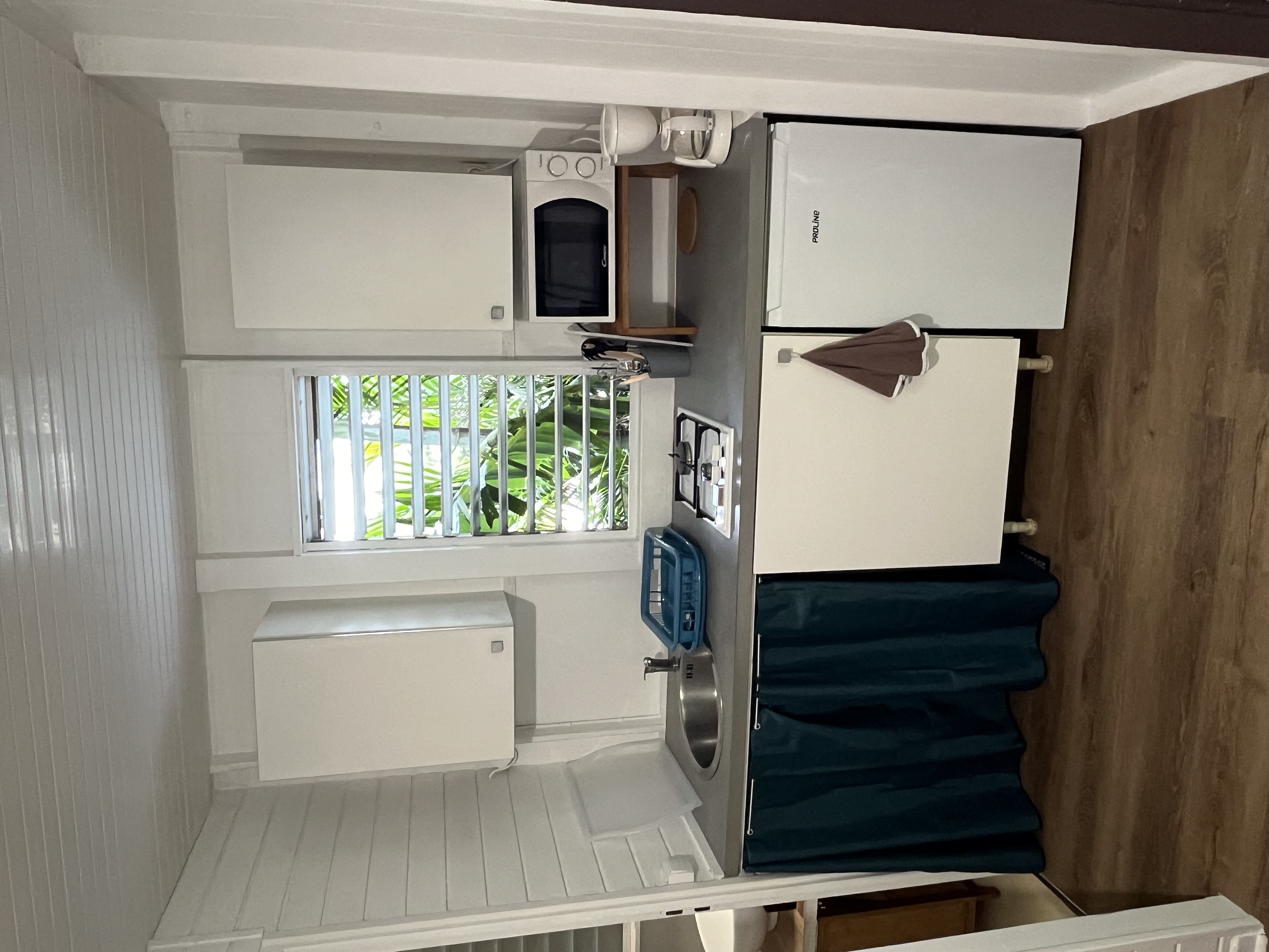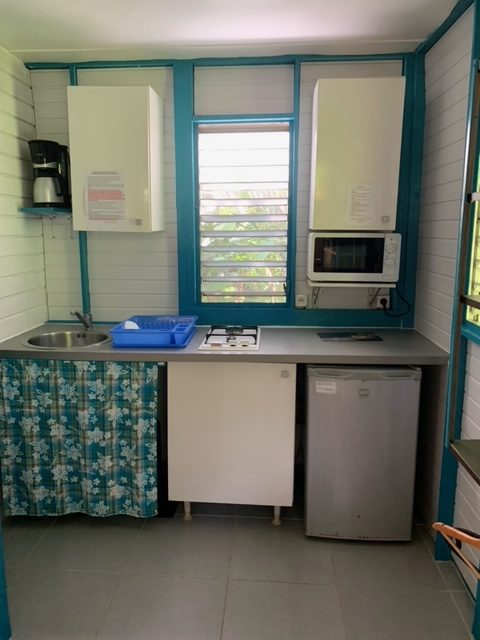 Bungalow de type T1 niché au milieu d'un jardin tropical. Equipé d'une cuisine, d'une chambre, d'une salle de douche et d'une terrasse.