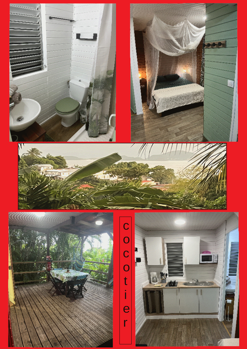 Petit studio sur pilotis niché au milieu d'un jardin tropical avec vue mer. Equipé d'une kitchenette, d'un coin chambre, d'une salle de douche et d'une terrasse.