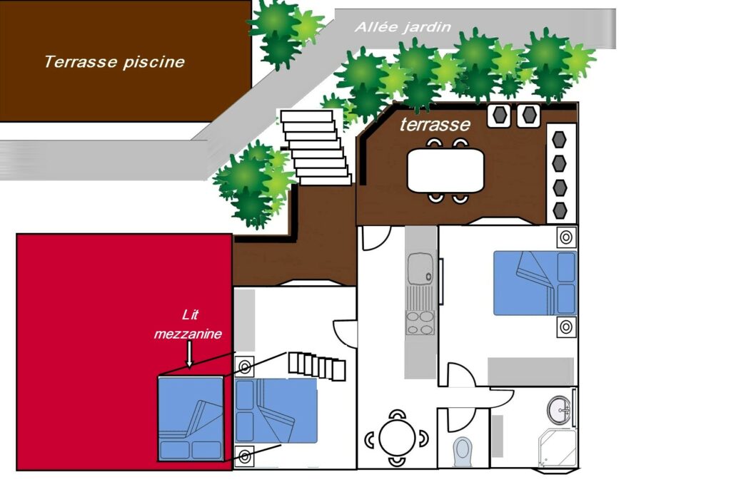 Gîte type T2 niché au milieu d'un jardin tropical. Equipé d'une cuisine, de 2 chambres, d'une salle de douche et d'une terrasse.